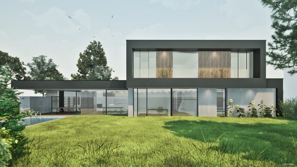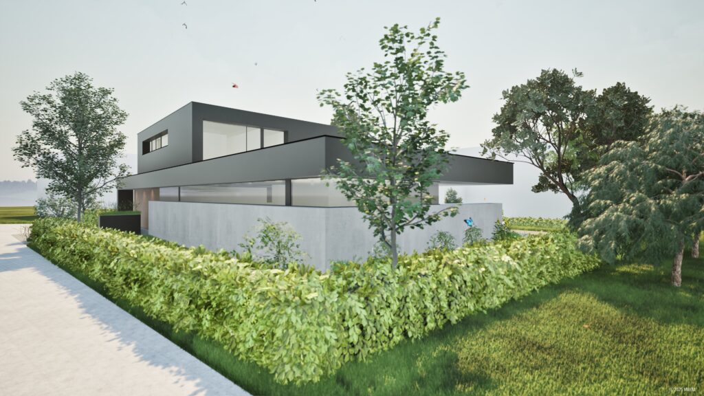 Visualisierungen zum geplanter Neubau eines Wohnhauses für eine Familie in Neulichtenberg Konzept und Entwurf in Kollaboration mit huberArchitektur